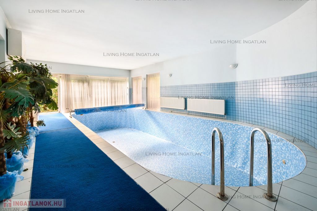 A földszinten található a 40 nm-es (10m x 4m, 1,60 mély) belső medence, amely a nappaliból megközelíthető.