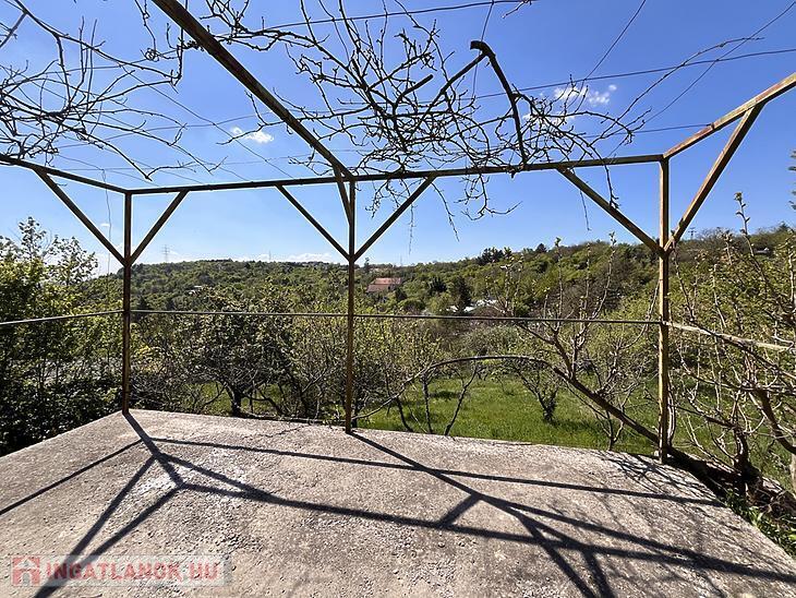 Békásmegyer-Ófaluban ELADÓ egy panorámás 84 négyzetméteres ÖNÁLLÓ CSALÁDI HÁZ 37 négyzetméteres fedett terasszal és kocsibeállóval 1590 négyzetméteres telken.