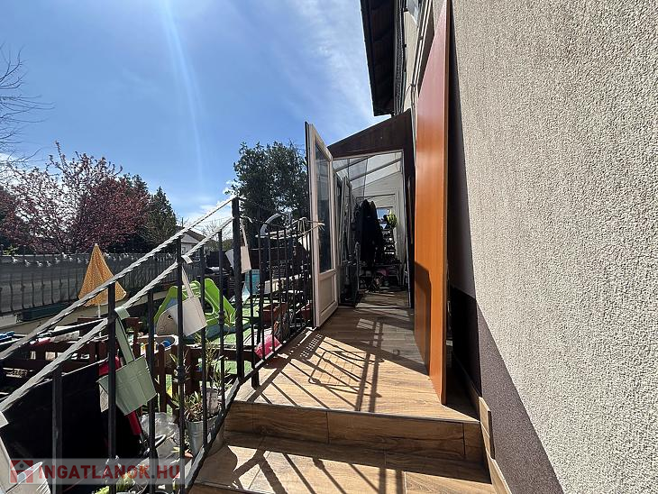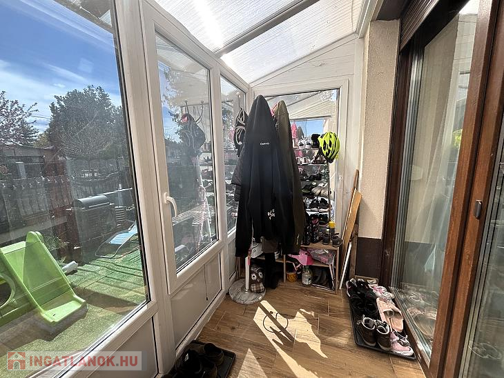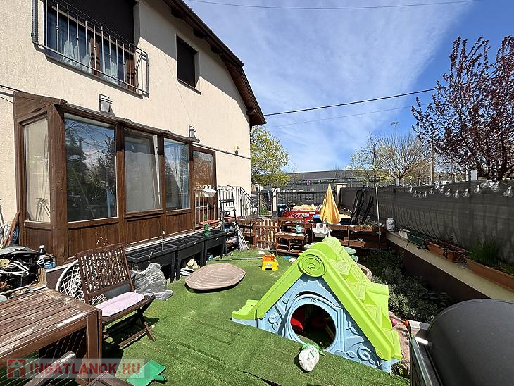 IV. kerületben, Újpest-kertváros részen, saroktelken lévő, előkertes, két fekvésű (K és É), duplakomfortos, bruttó: 109nm-es, nettó: 86nm-es, 3 szobás, de könnyen 2+2 félszobássá alakítható, amerikai konyhás nappalival rendelkező, napelemmel és riasztóval felszerelt, téglaépítésű házrész eladó, vízkiállással ellátott 22 nm-es pincével, saját 85nm-es kerttel, autóbeállóval.
