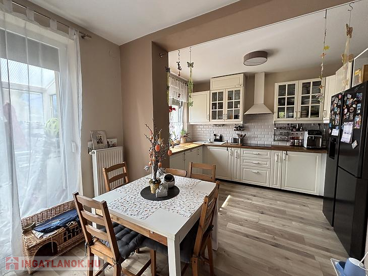 Az ingatlan felújított állapotú. A felújítás 2018 és 2020 között zajlott. A ház külső szigetelést kapott, a villanyvezetéketek áthúzták, a vízvezetékeket korszerűsítették. Kondenzációs cirkó, padlófűtés és 3 inverteres klíma került beszerelésre. Az ablakok és az ajtók thermo üveges műanyagok, redőnnyel és szúnyoghálóval. A konyha, a fürdőszoba és a WC felszereléseit, fali- illetve padlóburkolatait, valamint a többi szoba padlózatát és a belső ajtókat kicserélték. A fürdőszobaszoba, a WC és a pince járólapos, a többi helyiség laminált padlós. A bejáratnál járólapos, zárt veranda került kialakításra, ami előszobaként is használható.