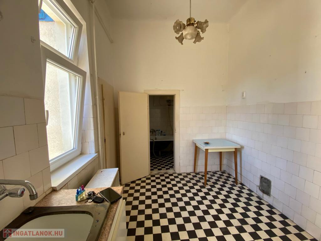 A konyha kertre, illetve belső udvarra néz, praktikus kamrával, mely lebontható, mert látott már szebb napokat.