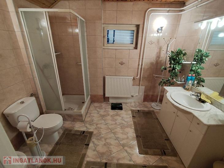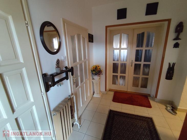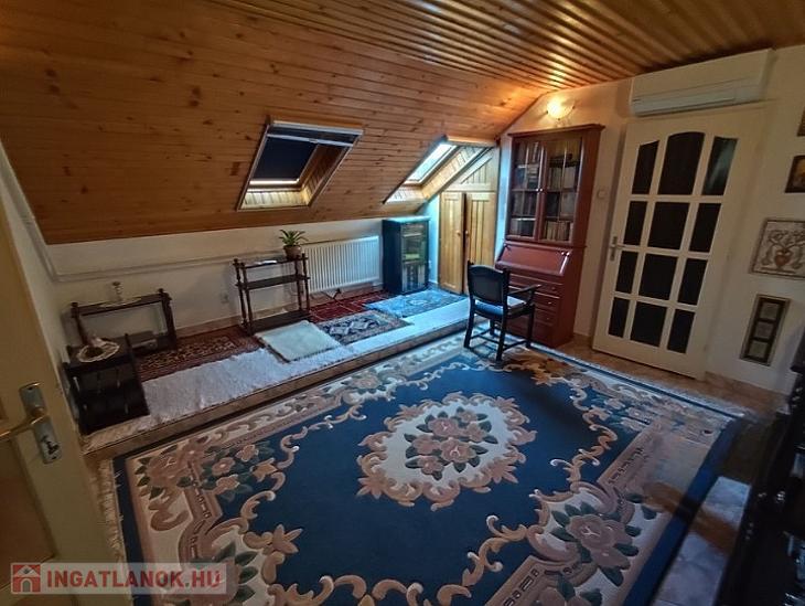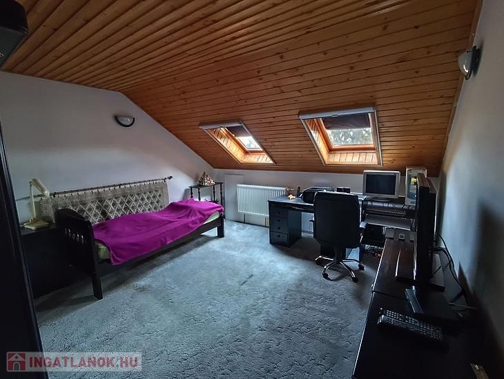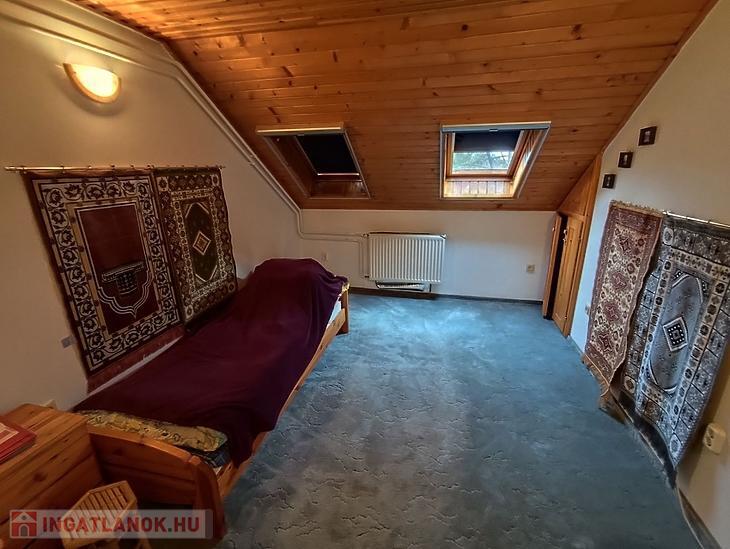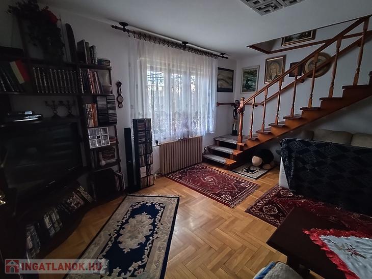 Az 1. emeleten található belső kétszintes, teraszkapcsolatos ingatlan br.: 130 nm, n.: 110 nm, 3 szoba, beköltözhető állapotú, duplakomfortos. Az 1. emeleten fa keretes ablakok, a tetőtérben velux ablakok található. A nappali fa parkettával, a szobák padlószőnyeggel, a többi helyiség járólappal burkolt. A fűtésről kombi cirkókazán gondoskodik, a tetőtérben már újabb lapradiátorok szereltek fel. A nagyobb komfortérzet kialakítása érdekében, a tetőtérben egy hűtő-fűtő inverteres légkondicionáló is beépítésre került.