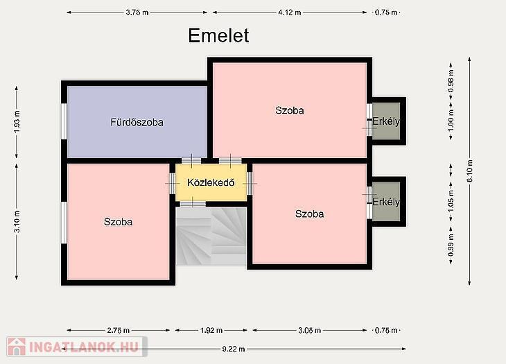 Az emeleten találunk még egy káddal felszerelt fürdőszobát, aminek köszönhetően az ingatlan duplakomfortos.