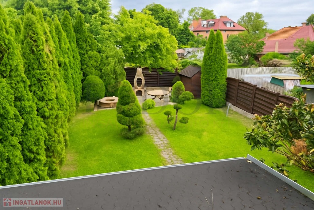 Az ingatlanhoz tartozik egy teljesen leválasztott, privát telekterület (300 m²), amelyet kizárólag a tulajdonosok használhatnak. A telken belül kialakított fedett kocsibeálló két autó számára, az ingatlan előtt pedig további négy autó parkolására van lehetőség.