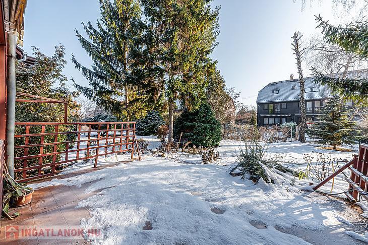 Az ingatlanhoz saját fedett garázs tartozik. A házból közvetlen kijárat nyílik egy kis teraszra, ahonnan a kert megközelíthető.
