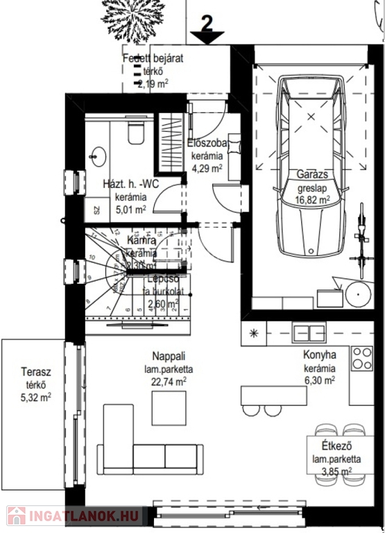 Parkolás: fedett garázs, nagyobb méretű autó számára is ideális