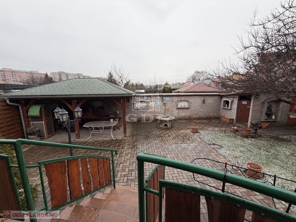 Az udvar parkosított, amiben 2db 35 éves diófa, és 1db 20 éves kajszi barack fa ad nyáron hűsítő árnyékot, és meghatározza a kert hangulatát.