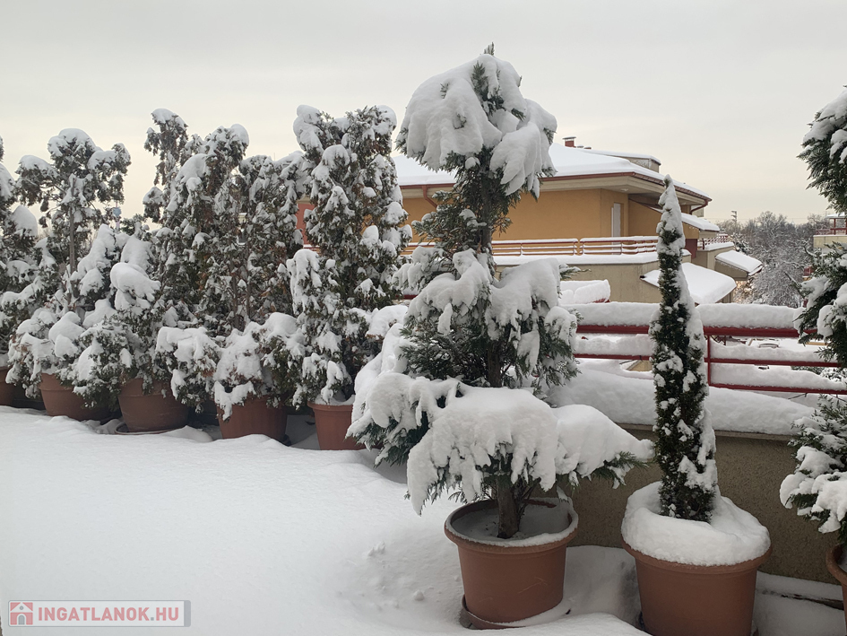 Valódi penthouse (tetőház) körbefutó terasszal a zöld Népligetnél, Budapesten.