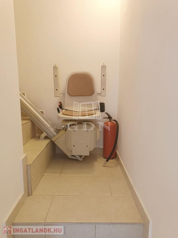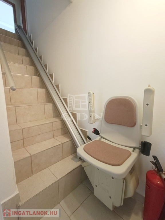 A két szint teljesen külön bejárattal és önálló funkcióval is használható, közöttük mozgáskorlátozott lépcsőlift biztosít akadálymentes közlekedést.