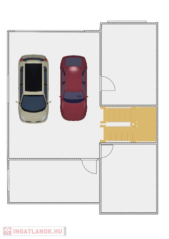 A pincében 3 autó tárolására alkalmas fűtött garázs, tároló, barkácshelység és kazánház található.