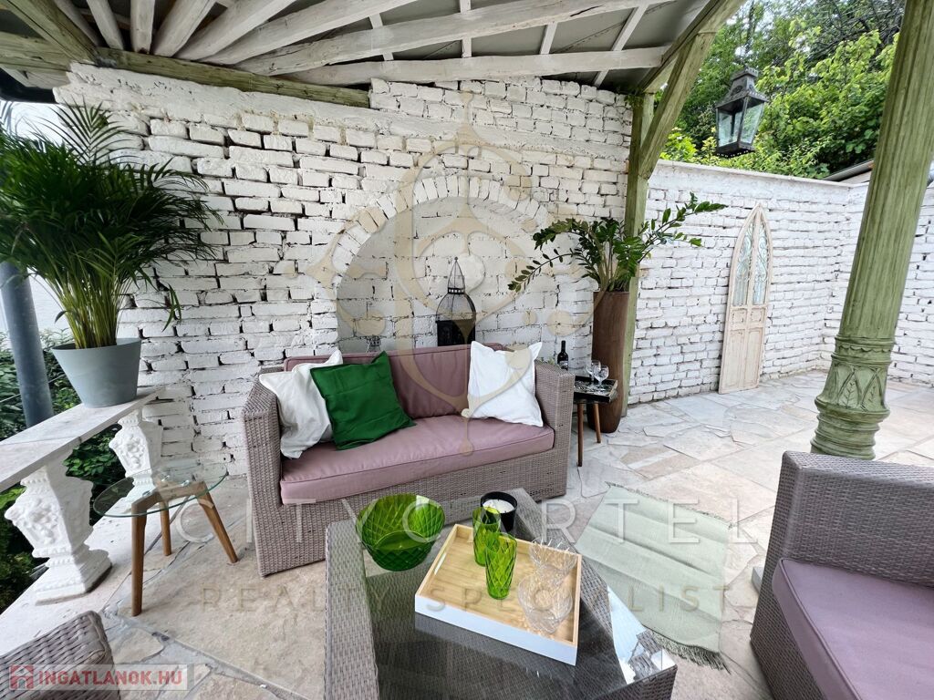 A 360+50 nm-es, háromszintes, impozáns nagypolgári villa a Provence-i házak romantikus hangulatát idézi, a napsütés egész nap körbe járja.