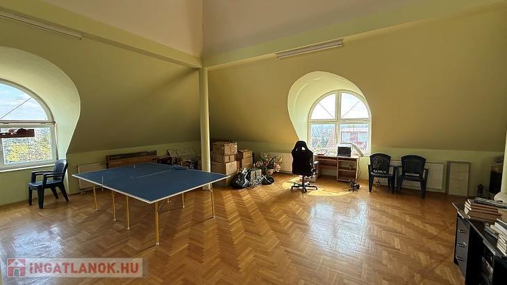 Az első emeleten további három hálószoba, egy nappali, fürdőszoba és gardrób található, valamint egy terasz, ahonnan lenyűgöző panorámás kilátás tárul elénk. A tetőtér egy 100 nm-es, egybefüggő tér, amely számtalan lehetőséget kínál – legyen szó akár további lakótérről, hobby helyiségről vagy irodáról.