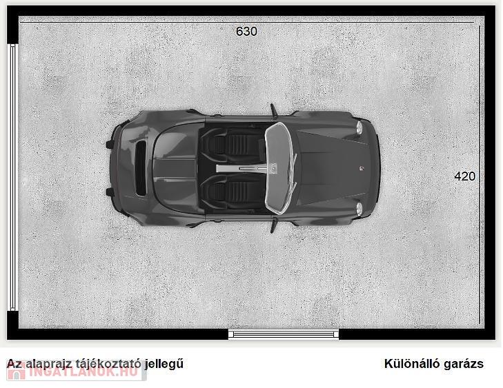A telken ugyancsak kialakításra került egy közvetlen utcafrontról nyíló, különálló garázs (26nm).