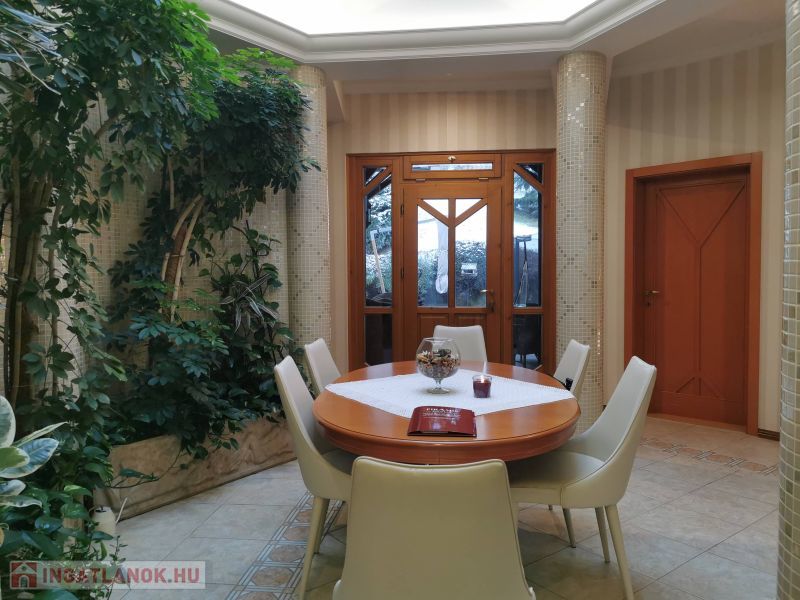 Az alsó szinten nagy méretű belső medence szaunák, fitnesz - pihenőrész. A kert szintjén van a nappali és 3 szoba mindegyik saját fürdőszobával. A tetőtérben 2 szoba mellett egy apartmant is van ahol egy kis konyhát is ki lehet alakítani.