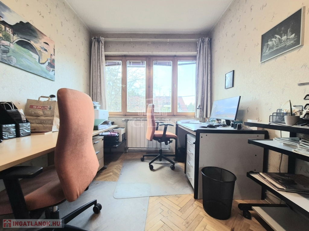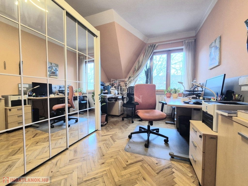 Budapest XIV. kerületének közkedvelt, csendes kertvárosi részén eladó egy 675 m²-es, garázzsal rendelkező telken álló, háromszintes családi ház, amely két külön lakást és szuterén helyiségeket foglal magába.