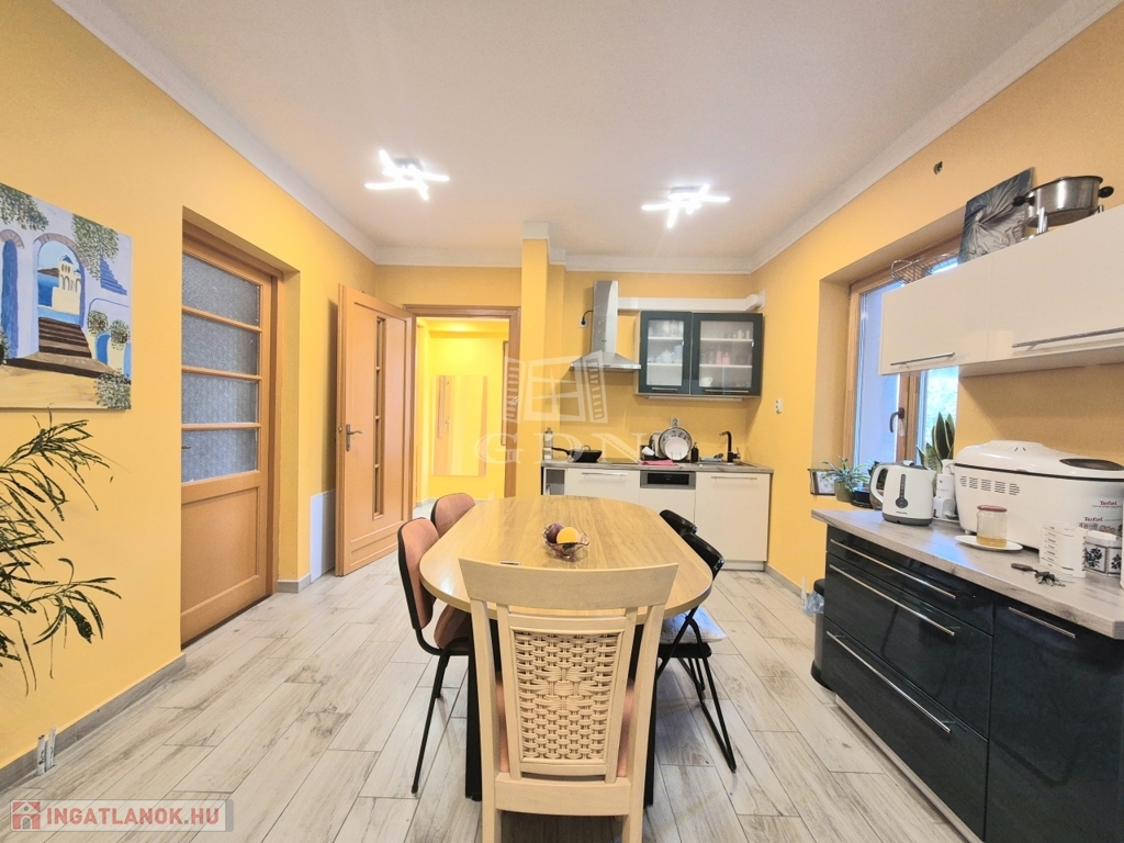 A földszinten lévő, 80 m2-es, két szobás lakás felújított állapotban, korszerűsített gépészettel rendelkezik.