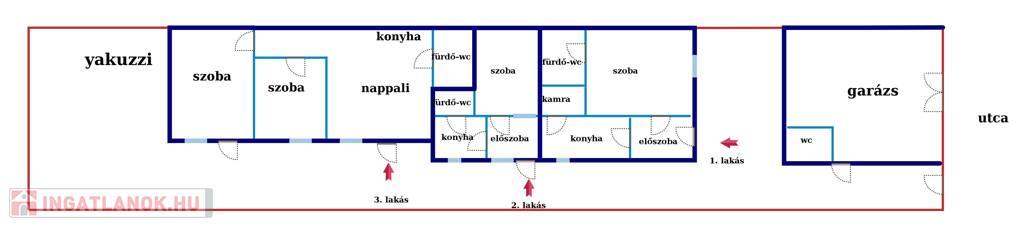 Heységei: előszoba, konyha, kamra, szoba, fürdő-wx