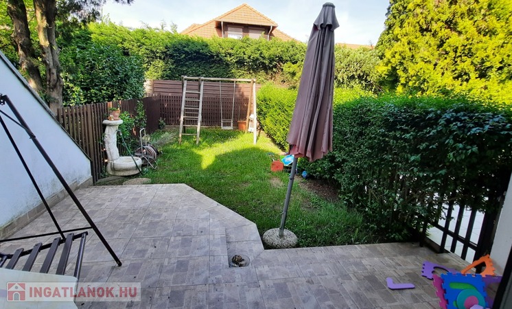 A lakáshoz tartozó kert szépen parkosított, kisgyermekeseknek, idősebbeknek ideális választás lehet. A teraszon intim környezetben pihenhetünk, fogadhatjuk barátainkat, vagy sütögethetünk kedvünkre. Különösebb karbantartásra nincs szükség.