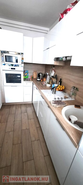 A konyha ízlésesen berendezett, gépesített, teljes berendezéssel a vételár részét képezi. A fürdőszoba szintén.