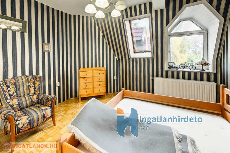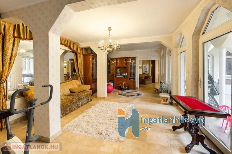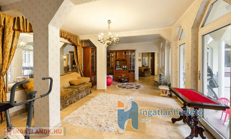 Elhelyezkedése: Belterület Állapota: Jó Komfort besorolása: Luxus komfortos Építési éve: 1993 Alapterülete: 330 m2 Telekterülete: 710 m2 Szobák száma: 7szoba Felújított: Felújított Felújítás éve: 2016 Közművek: Gáz, Víz, Villany, Csatorna Áramellátás: 230V Fűtés típusa: Cirkó Építési mód: Tégla Tető formája: Magas Tető anyaga: Cserép Parkolási lehetőség: Garázsban Napelem: Nincs Jellemzői: Alacsony rezsi Energetikai besorolás: C Egyéb jellemzők: Terasz Tv, Internet: Kábeltévé, Internet Rezsi költség(Ft): 47000