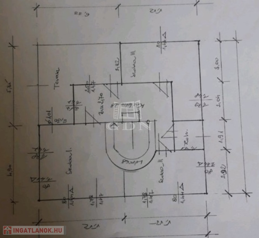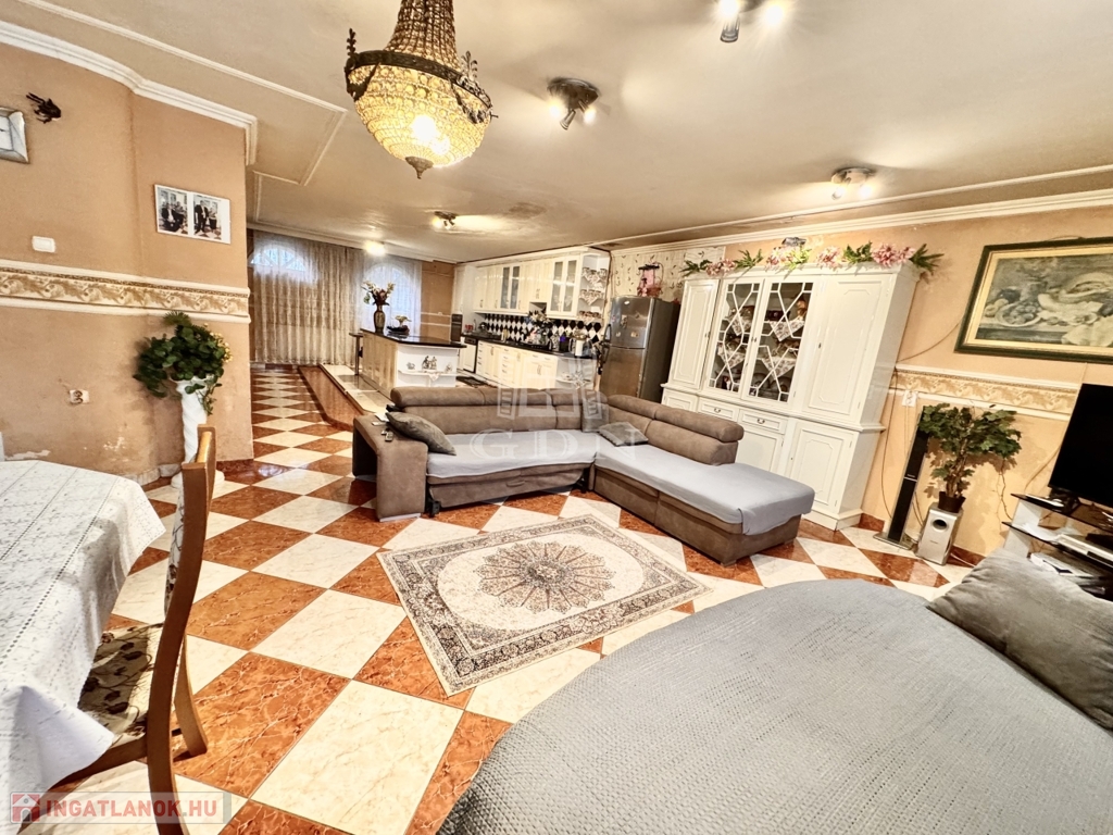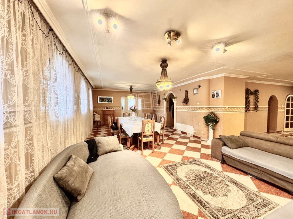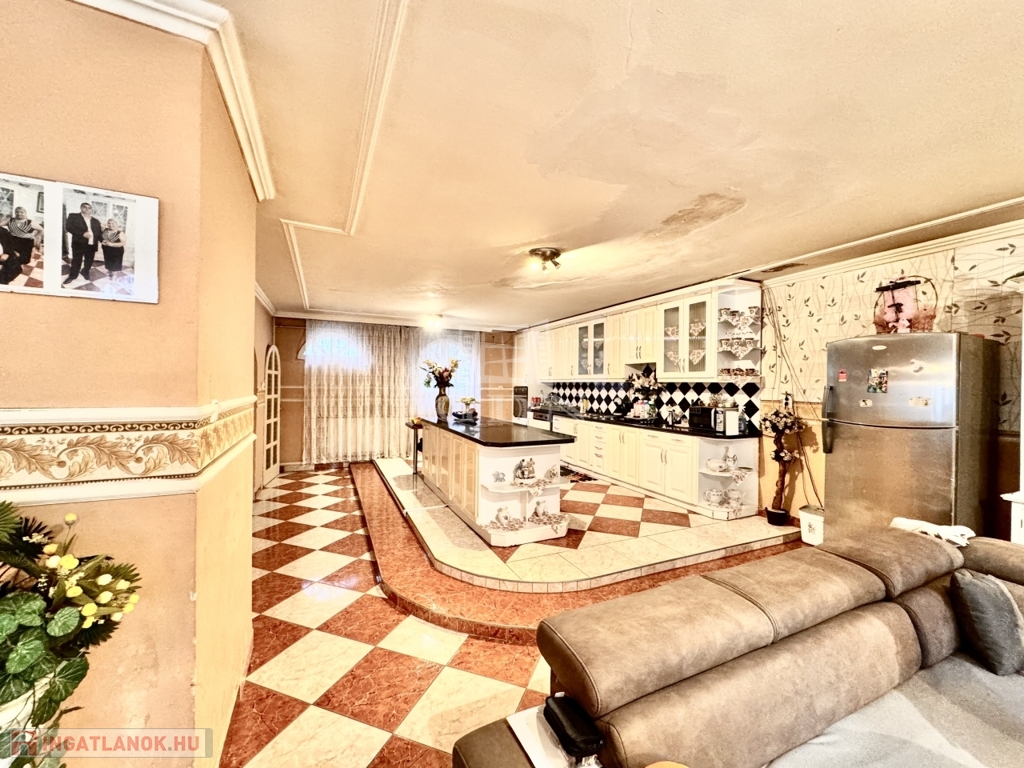 – Fél-szuterén szint: 2,6 m belmagasság, óriási nappali-ebédlő, konyha, fürdő, szoba