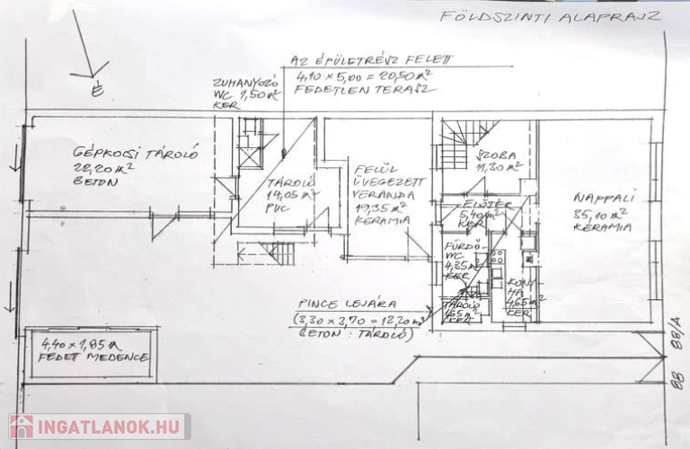 A házhoz garázs tartozik, az udvaron kültéri fedett medence kényezteti a tulajdonosokat.