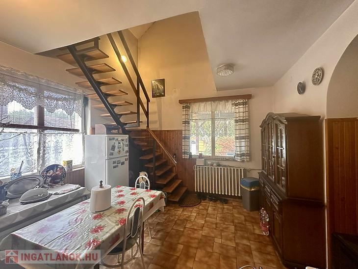 Esztétikai és műszaki felújítást igényel. A fűtést gázkazán biztosítja. Egy mélyaknás garázs és épített medence is rendelkezésre áll.