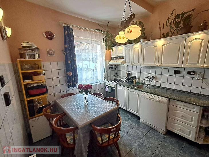 A telek szépen karban tartott, szerelő aknás garázs is kialakításra került, de több autóval is van lehetőség beállni.