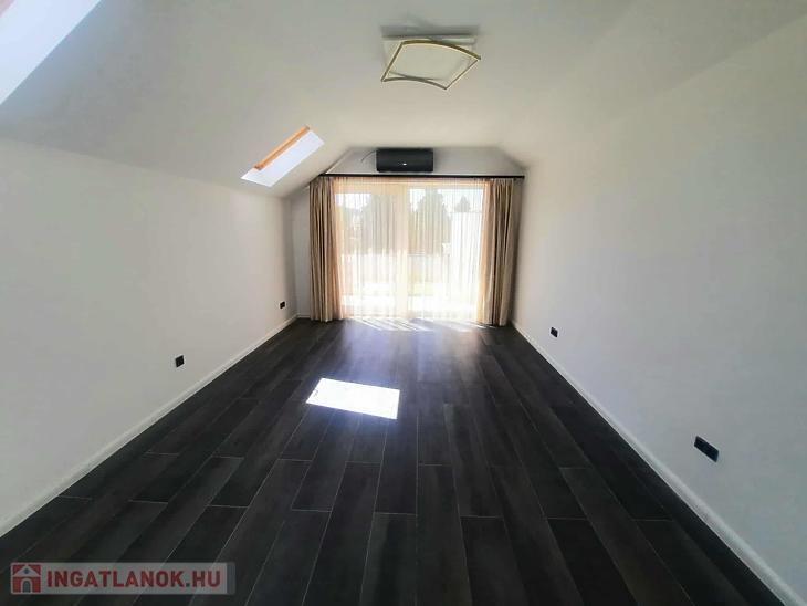 Téglából épül kétszintes családi ház. A házban okos otthon rendszer, kamerarendszer és elektromos kapu lett kialakítva. A ház minden helyiségében hűtő-fűtő klíma került beszerelésre. A fűtésről puffer gázkazán és hőszivattyús padlófűtés gondoskodik. A+ besorolású energetikai tanúsítvánnyal rendelkezik. A 326 nm-es mediterrán stílusú kertben egy jakuzzi is helyet kapott. A bent lévő bútorzat és gépesítés a vételár részét képezi.