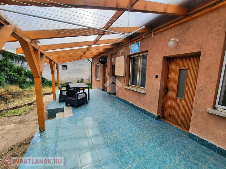 A 2 generációs családi házból leválasztott egység egy nappaliból, konyhából, fürdőszobából és egy folyosóból áll. A felette lévő tetőtér beépíthető, így plusz 2 szoba még kialakítható. Saját villanyórával rendelkezik, a fűtésrendszer még kialakításra vár. Elektromos tolókapu nyílik az udvarra, ahol autóbeállási lehetőség biztosított. A telken még egy 35 m2-es épület is található.