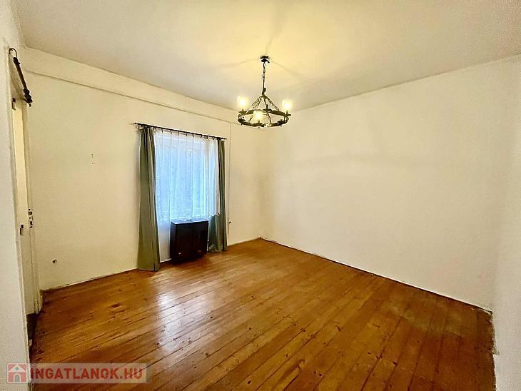 A telek végében elhelyezkedő, különálló házban balra és jobbra található egy-egy világos, DNy-i irányba, kertre tekintő szoba. Az előtérből egyenesen juthatunk a főzőfülkéhez, a zuhanyzós fürdőhöz és egy külön leválasztott wc-hez. A tető cseréppel fedett, fafödémes. A szobák fűtését gázkonvektor biztosítja. A bejárat előtt egy 14 m2-es burkolt terasz található.