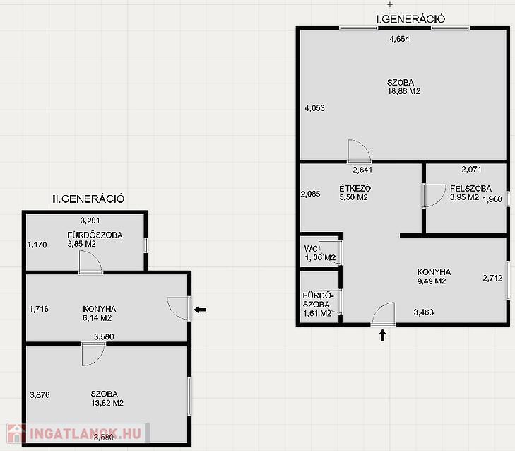 A II. generáció 24 m2-es, itt szoba, konyha és fürdőszoba került kialakításra, a fűtés gázkonvektorral megoldott. Ez a rész kívülről 10 cm-es hungarocell szigetelést kapott, a tető újszerű és kőzet gyapottal szigetelt a padlás.