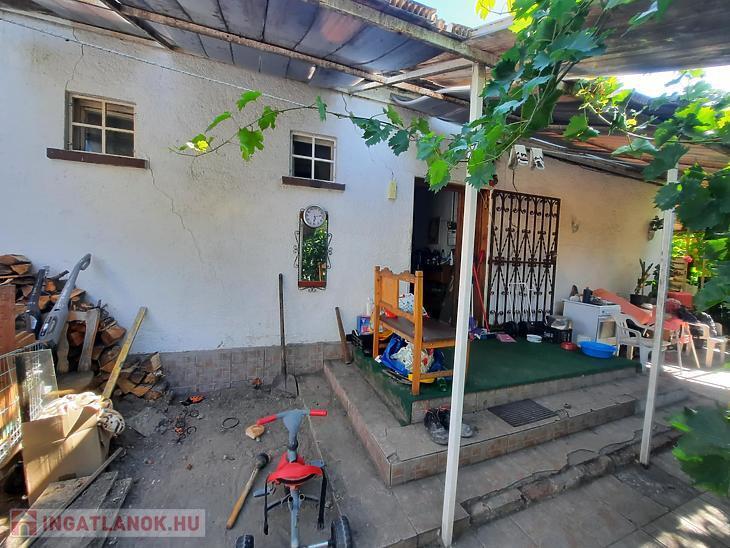 A telek végében egy tégla melléképület található, illetve autóbeállási lehetőség adott.