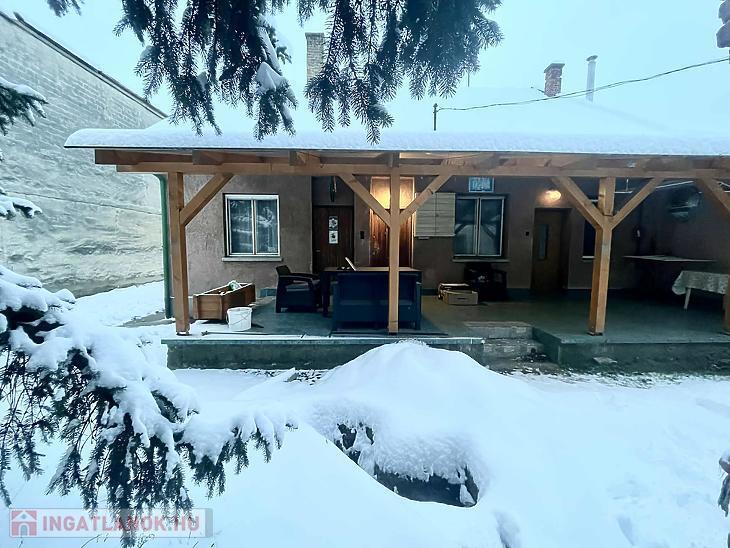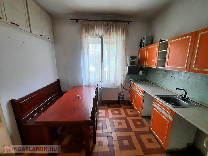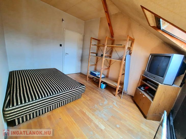 A 2 generációs családi házból leválasztott egység felújítandó. A földszinten egy nappali, étkezős konyha, kamra, fürdőszoba, külön mosdó található és a lépcsőfeljáró alatti kis dolgozószoba található. A tetőtérben 3 hálót és egy fürdőt alakítottak ki. Saját villanyórával rendelkezik. A fűtést a saját pincében elhelyezett vegyestüzelésű kazán és egy gázkazán is biztosíthatja, a melegvízről bojler gondoskodik. Elektromos tolókapu nyílik az udvarra, ahol autóbeállási lehetőség biztosított, de garázs is található az udvarban