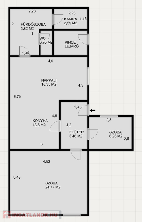 A házrészben amerikai konyhás nappali, 2 szoba, előszoba, kamra, fürdőszoba és mellékhelyiség található. 2003-ban a burkolatok, víz-, villanyvezetékek cserélve lettek, a kondenzációs gázkazán és a lapradiátorok pedig 2023-ban. Hűtő-fűtő klíma és cserépkályha is rendelkezésre áll. Tartozik a lakáshoz egy 13,5 m2 pince, 12 m2 tárolóval, autóbeálló és 200 m2 kertrész.
