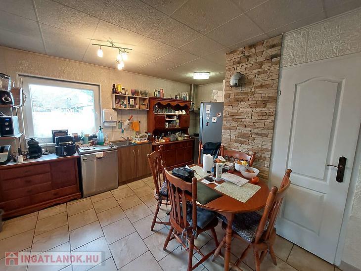 Étkezős konyha, nappali, 2 szoba, mosókonyha, fürdőszoba, mellékhelyiség áll rendelkezésre. 10 éve teljes víz, villan és csatorna hálózat cserélve lett, nyílászárók műanyagok és hőszigeteltek. A konyha fölött 15cm tőzeggyapot szigetelés van. A burkolatok jó állapotúak. Tartozik a házhoz terasz, garázs, tárolók és a kert rendezett.
