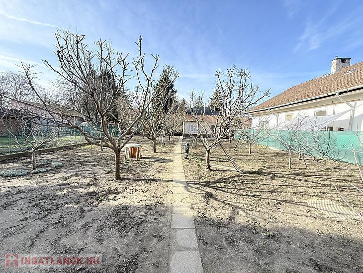 A 880 m²-es, 15 méter utcafronttal rendelkező telek igazi kertvárosi hangulatot áraszt. A kertben 25 darab termő gyümölcsfa található, amelyek nemcsak esztétikai értéket képviselnek, hanem bőséges termést is biztosítanak az új tulajdonos számára.