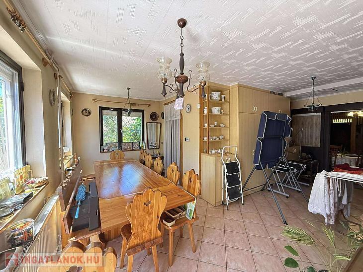 A ház 1984-ben téglából épült, 1994-ben bővítésen esett át. Palatető fedi, a villanyvezetékek rézből készültek. Fűtését gázkazán biztosítja. A nyílászárók fa szerkezetűek, jó állapotúak, thermo üvegezéssel. A szobák fa parkettával burkoltak, míg a vizes helyiségek hidegburkolatot kaptak. Az ingatlan világos, tágas tereinek köszönhetően kiválóan alkalmas akár két generáció együttélésére, akár vállalkozási célra.