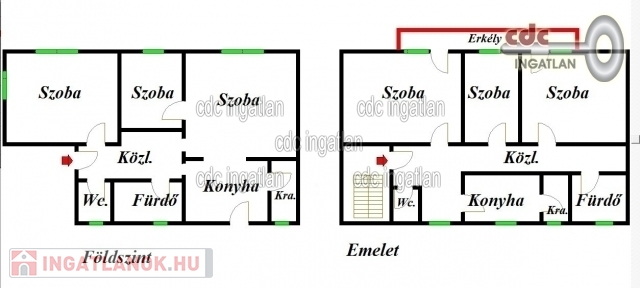 A két szint külön bejáratú, valamint külön villany- és gázórával rendelkezik.
