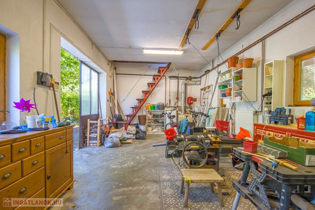 A műhely átalakítható, többfunkciósként használható: garázsként vagy további szobák és vizes helyiség kialakítására is van lehetőség, mivel a ház folytatólagos részénél van. A telken rengeteg fa és virág mellett egy 10 m2-es szaletli is található.