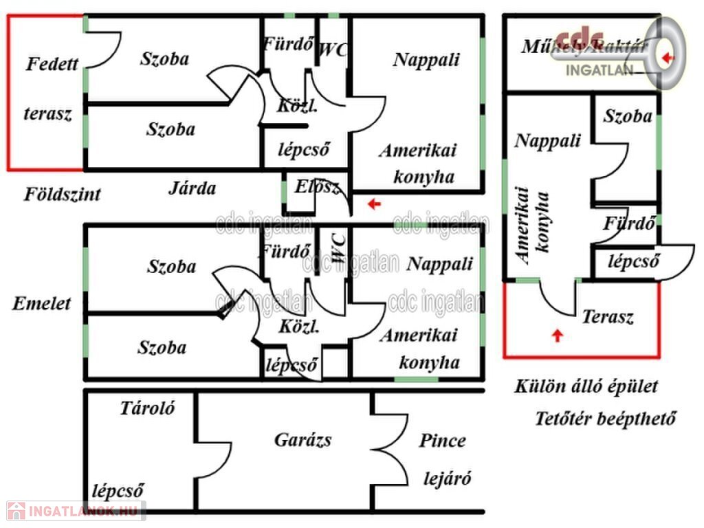 Az ingatlan világos, napfényes, körben napos fekvésű. A kertben található egy önálló, 40 m2-es kis ház, amely tökéletes nagyszülőknek, felnőtt gyermeknek, vendégeknek vagy akár bérbeadás céljára. Amerikai konyhás nappali, hálószoba, fürdőszoba, pince, terasz helyiségekből áll. Fűtése klímával és cirkókazánnal megoldott.