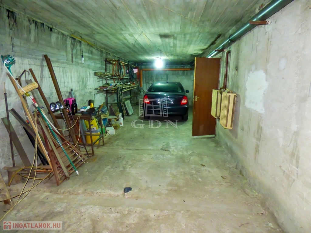 A pinceszinten iroda, amely akár hobby szobaként is funkcionálhat, tárolók, kazánhelyiség, wc, kézmosó és egy fűthető dupla garázs található.