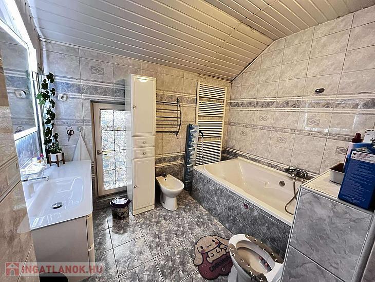 A ház 3 szintes, a földszinten: nappali, szoba, konyha, mosdó, kazánház áll rendelkezésünkre, az emeleten: 3 szoba, 1 félszoba, tágas fürdőszoba. Tetőtérben pedig 2 nagy fenyő burkolatú szoba került kialakításra. A gázkazán és teljes gázcsőhálózat cserére került 2024-ben. A ház rendelkezik egy 124 M2 melléképülettel, ahol a medence és a szauna kapott helyet, napelem fűti. A ház biztonságát kamera és riasztó védi.