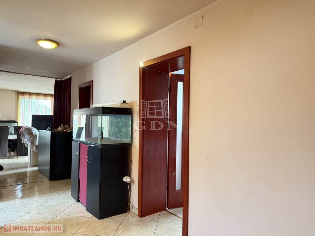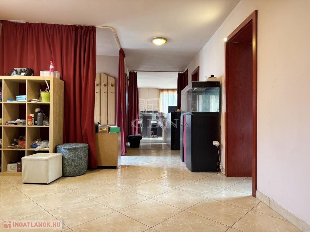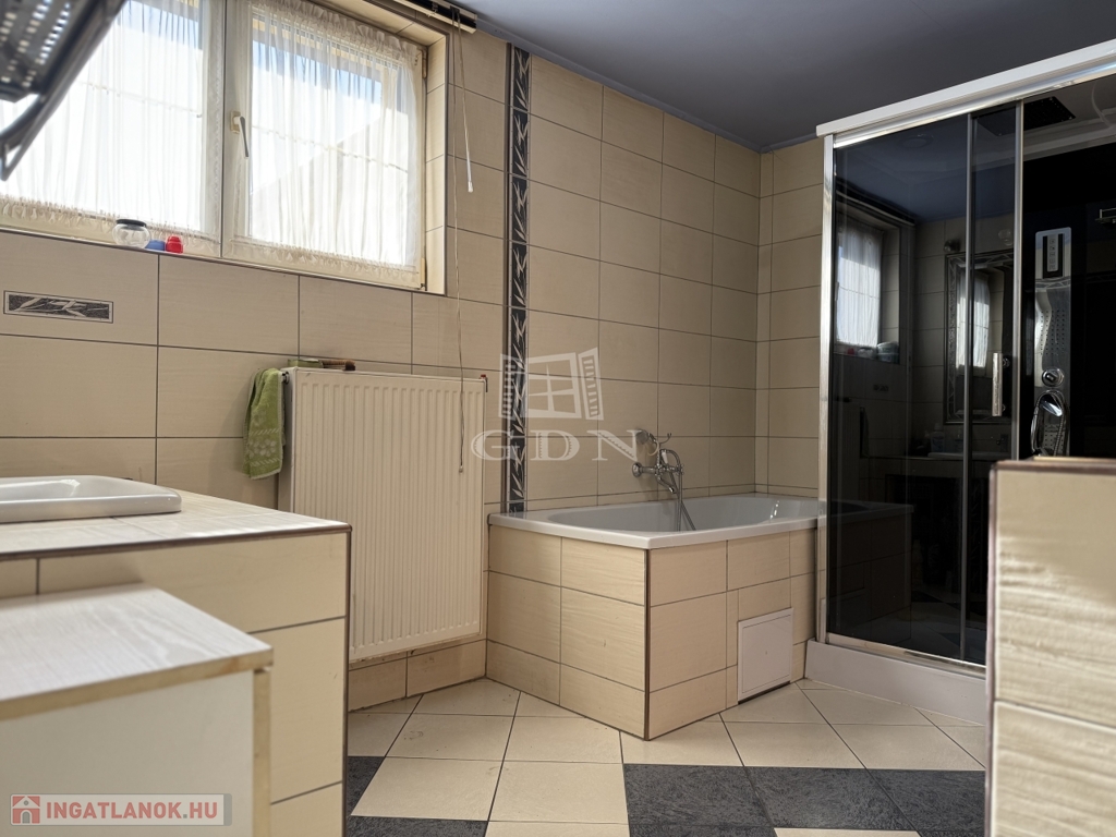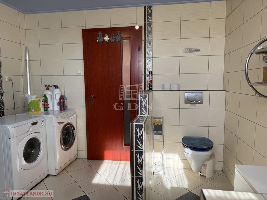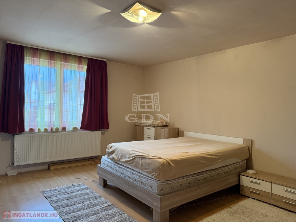 Az udvaron garázs egy autó részére. A lakás és a műhelyrész is riasztórendszerrel védett.