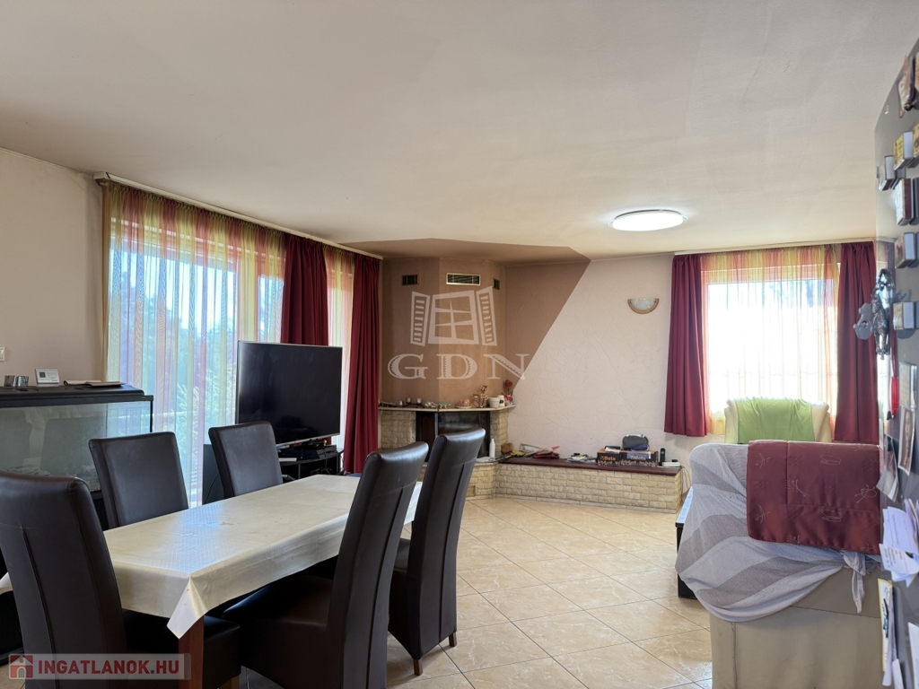 A lakótér az emeleten található 139 m2, melynek az elosztása a következő: amerikai konyhás nappali nagy terasszal, kandallóval, gardrób szoba, kamra, fürdőszoba ( káddal, két személyes hidromasszázs kabinnal ), két külön bejáratú hálószoba. A lakás a tetőtér felé tovább bővíthető, ami még plusz 90 m2-t jelent.
