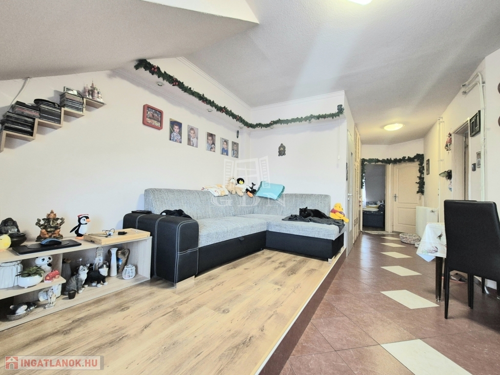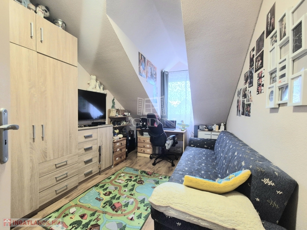valamint a tetőtérben egy külön bejáratú lakás található.