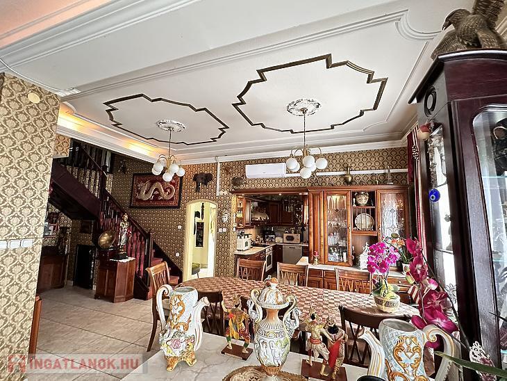 Ez a remek állapotú, 280 m²-es nagypolgári stílusú családi ház 1083 m²-es telken kínál tágas életteret és kényelmet, egy csendes, jól megközelíthető környéken, közel a tömegközlekedési és bevásárlási lehetőségekhez. Az ingatlan ideális választás lehet nagyobb családoknak, vagy akár két generáció számára is, hiszen az elrendezés könnyedén átalakítható.