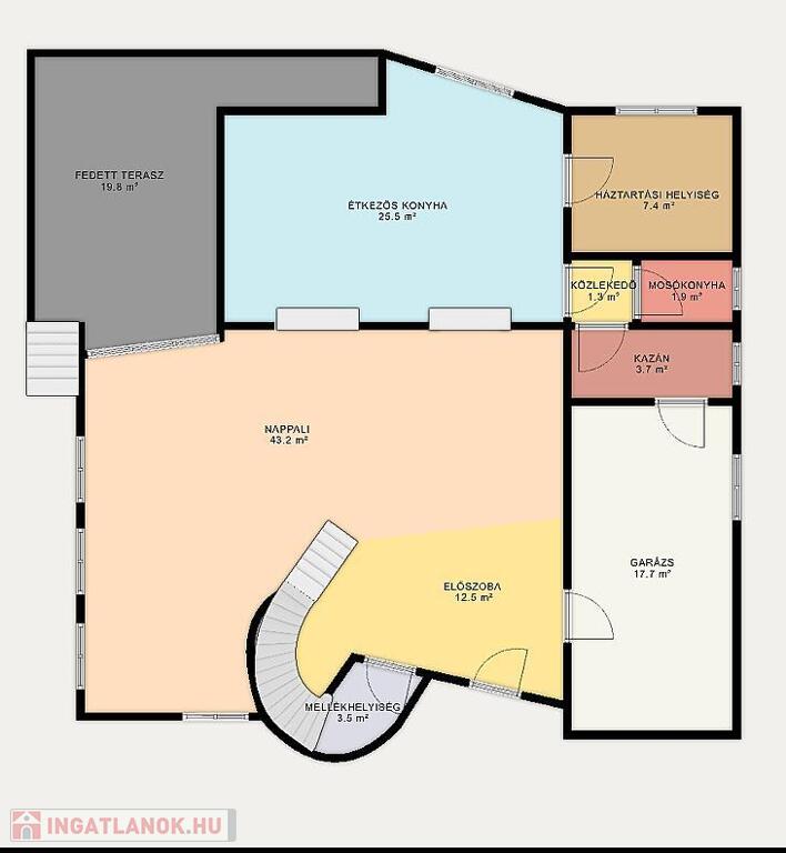 A konyhából jutunk ki egy 20 M2-es tágas teraszra. A telken található 1 állásos garázs.