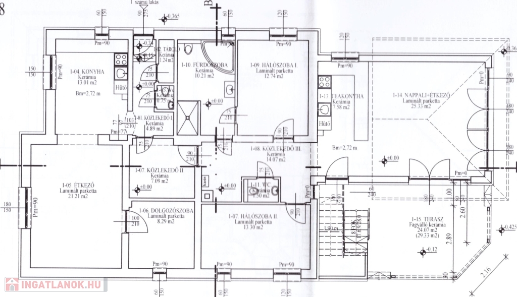 2. FÖLDSZINTI LAKÁS: 85nm lakóterületű, amerikai konyhás, terasz-kapcsolatos nappali, 2 hálószoba, kádas-zuhanyzós fürdőszoba, mellékhelyiség kapott helyet.