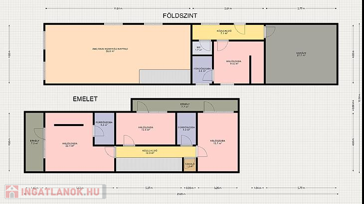 •	Garázs felett 25 nm padlás található
